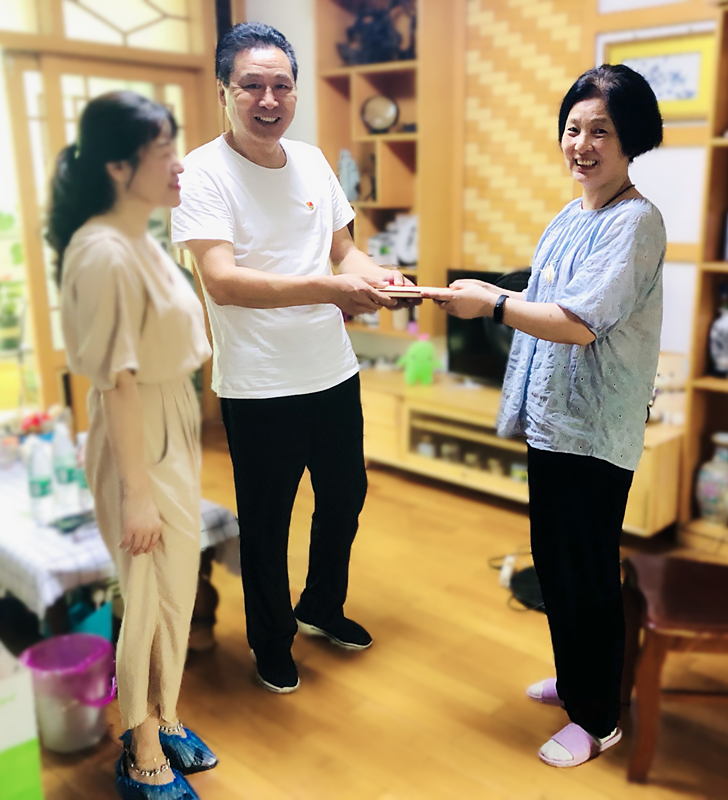 今年81歲的柯勝龍老人是一名有著57年黨齡的老黨員。來到柯勝龍家中,徐民為他佩戴上“光榮在黨50年”紀(jì)念章,同老人促膝而坐,拉家常、憶過往、談發(fā)展,感謝他多年來為供水事業(yè)作出的積極貢獻。希望他在保重身體的同時,不忘初心,繼續(xù)發(fā)揮余熱,一如既往關(guān)心支持新時代供水事業(yè)發(fā)展。