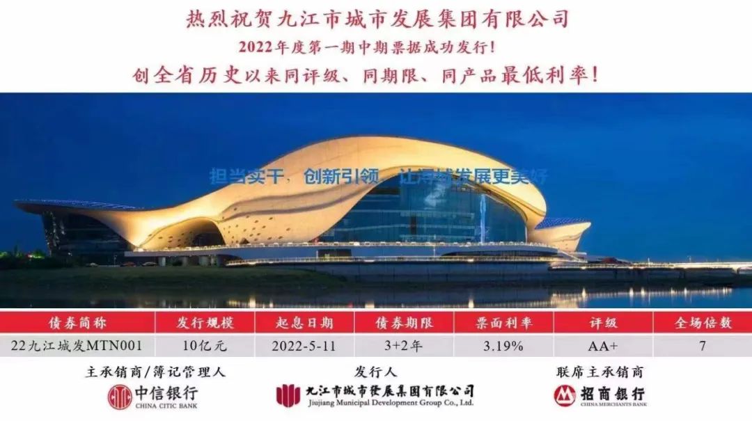 此次債券的成功發(fā)行,得益于市國資委、市金融辦、市國控集團等上級主管部門的關(guān)心與支持,以及承銷商中信銀行和招商銀行的通力配合。市城發(fā)集團將不忘初心,砥礪前行,立志為九江高質(zhì)量跨越式發(fā)展貢獻力量!