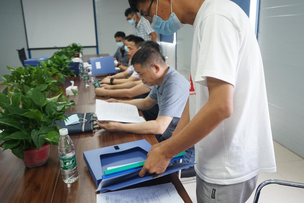 檢查組一行聽取新建快速路(一期)系統(tǒng)工程項(xiàng)目組安全生產(chǎn)工作情況匯報(bào)