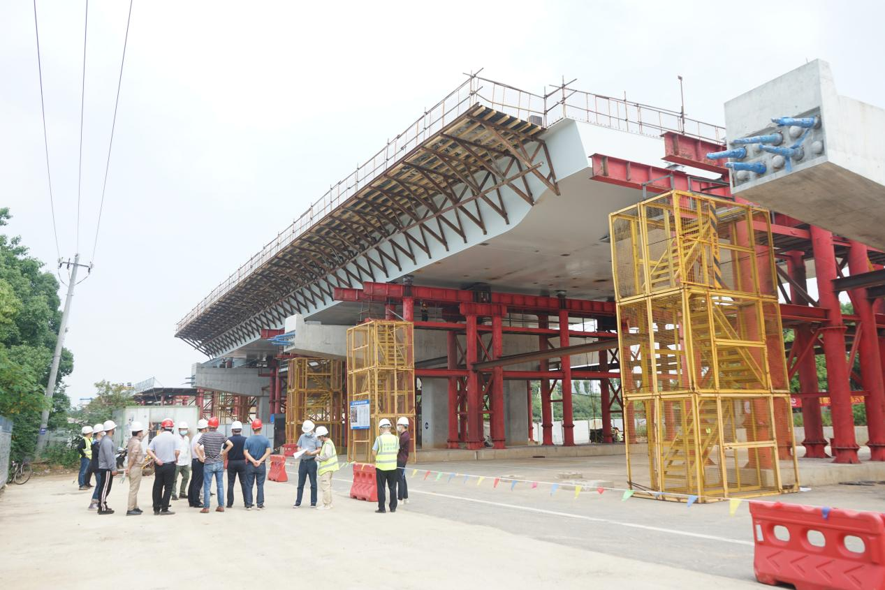 檢查組一行在新建快速路(一期)系統(tǒng)工程三標(biāo)段對鋼混組合梁頂推作業(yè)安全生產(chǎn)情況進(jìn)行詳細(xì)了解