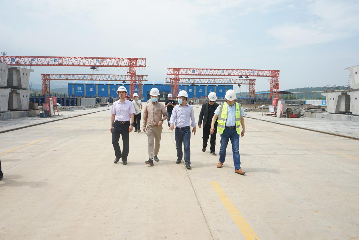 檢查組一行在新建快速路(一期)系統(tǒng)工程二標(biāo)段詳細(xì)查看現(xiàn)場