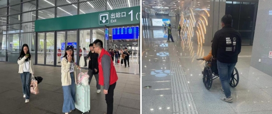 在人流如織的出站口,黨員志愿者們耐心為旅客引導(dǎo)解答,積極引導(dǎo)旅客前往對(duì)應(yīng)地點(diǎn)乘坐旅游專(zhuān)線、公交、出租車(chē)和網(wǎng)約車(chē)等。對(duì)于行動(dòng)不便的老人、孕婦和抱著嬰兒的乘客,志愿者們主動(dòng)為其提供拎包、攙扶等貼心服務(wù),他們的身影在人群中穿梭,成為了一道亮麗的風(fēng)景線。