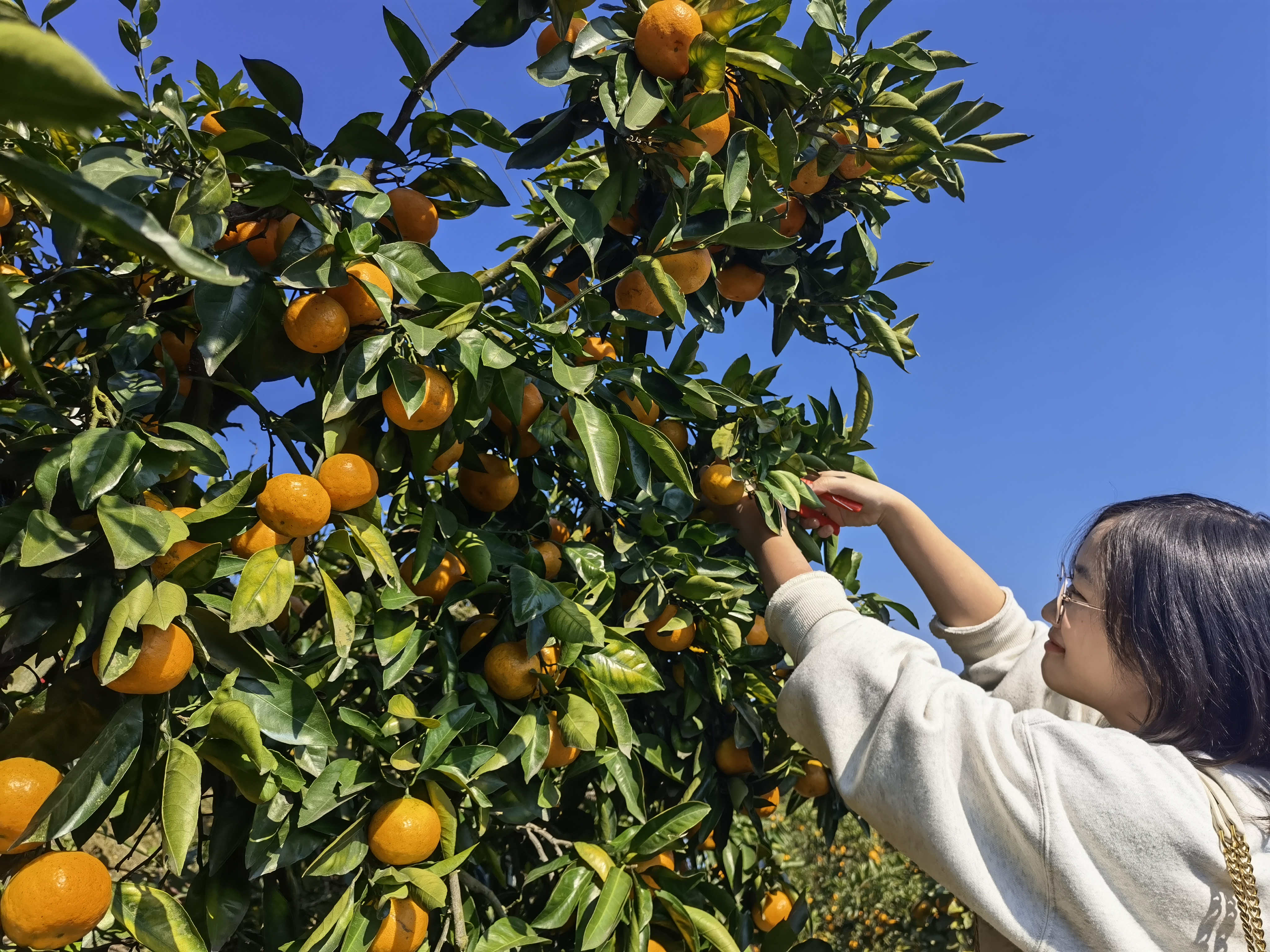 “快過來了,這株樹上的桔子,吃一口,甜遍全身;呵呵,摘桔子是一種技術(shù)活,桔子跟螃蟹一樣,分公母,母橘子比公桔子好吃;你幫我拿袋子,我?guī)湍阏痹趫F(tuán)結(jié)友愛中,大家提著一個(gè)個(gè)滿滿的袋子,在豐收的桔子園,點(diǎn)評(píng)著誰的桔子多、誰的桔子甜。