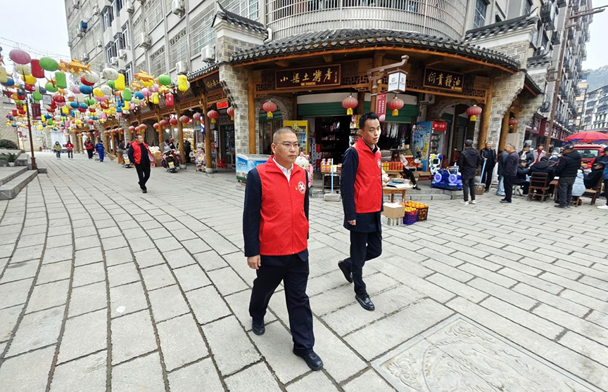 在修水縣,九江國有保安集團修水縣分公司組織志愿者到寧州古城開展義務(wù)巡邏。志愿者們分組在古城的街巷進行巡查,協(xié)助維持古城內(nèi)的秩序與安全。他們一路巡查古城內(nèi)的消防設(shè)施是否完備,檢查商戶的門窗是否安全,提醒游客愛護古跡、文明游覽,為寧州古城的有序運營和文化傳承保駕護航。