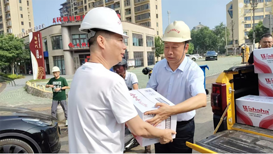 一份份解暑物資,一句句貼心叮囑,為奮戰(zhàn)在高溫一線的員工送去了組織的關(guān)懷與夏日的清涼,鼓舞了大家的士氣和干勁,現(xiàn)場(chǎng)的施工班長(zhǎng)接過(guò)慰問(wèn)品說(shuō)道:“感謝公司關(guān)心,我們一定按時(shí)按質(zhì)完成任務(wù)!”