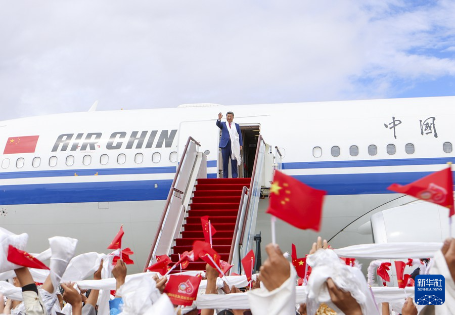 習(xí)近平在出席西藏自治區(qū)成立60周年慶?;顒?dòng)后返回北京